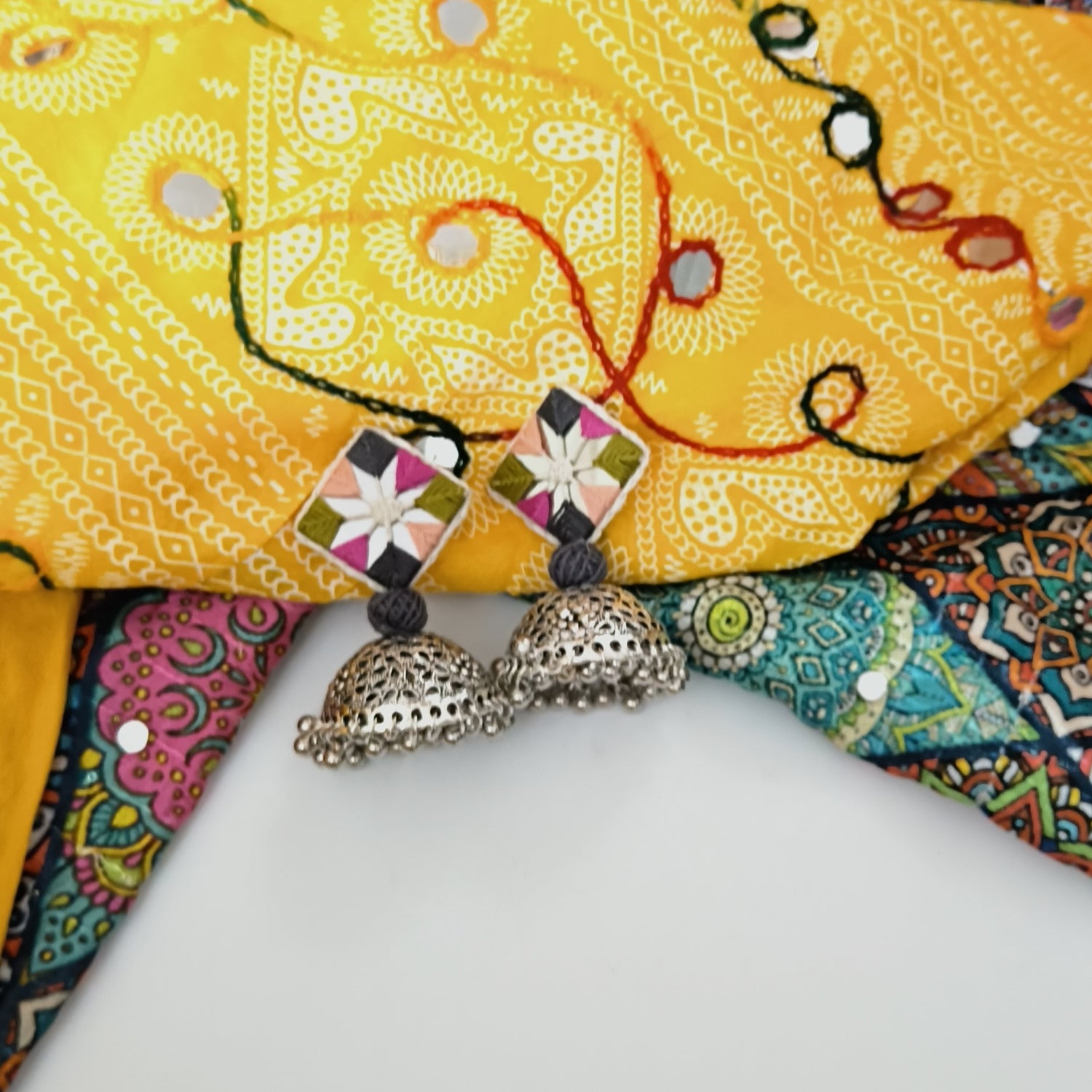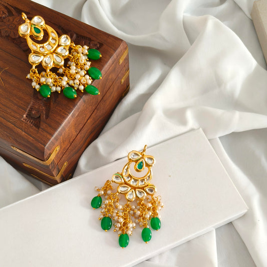 "ANSIKA" Gold Plated Green Kundan Studed & Beaded Chandbali Earrings