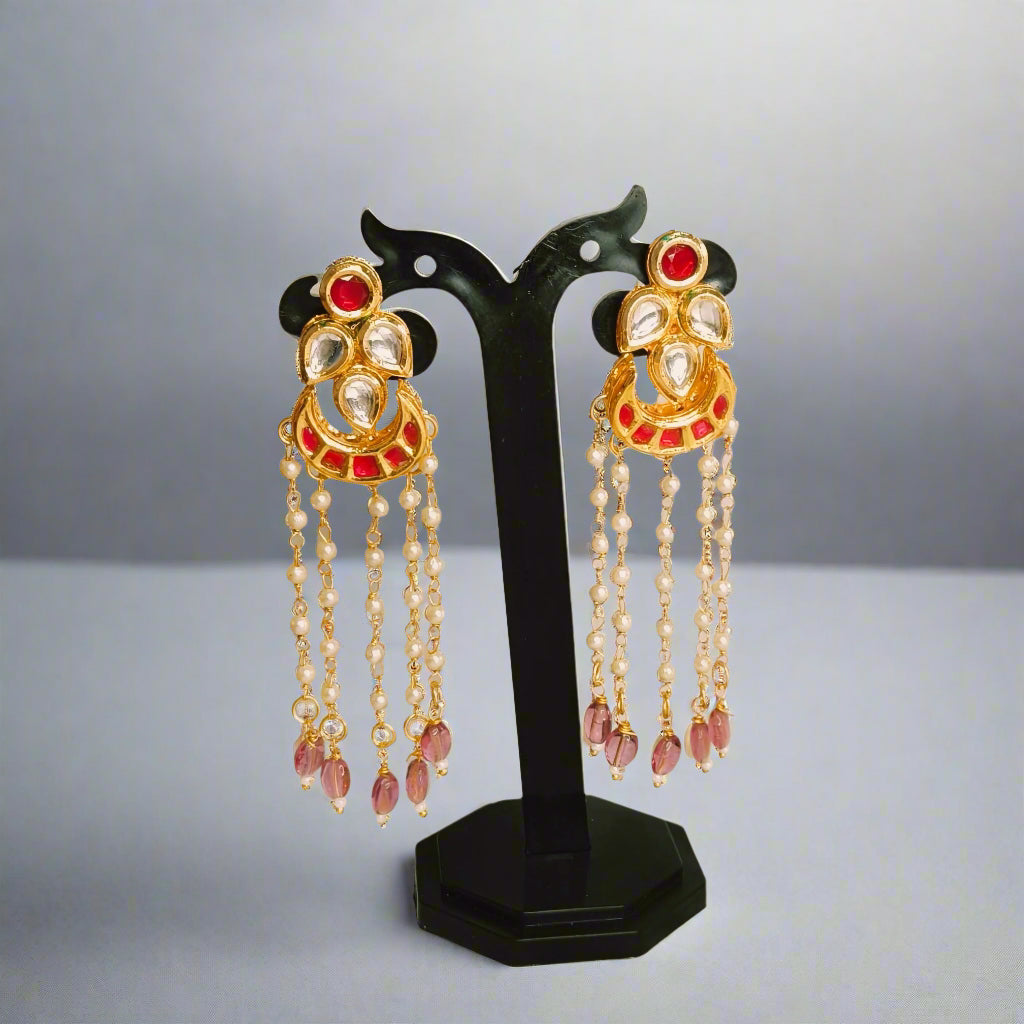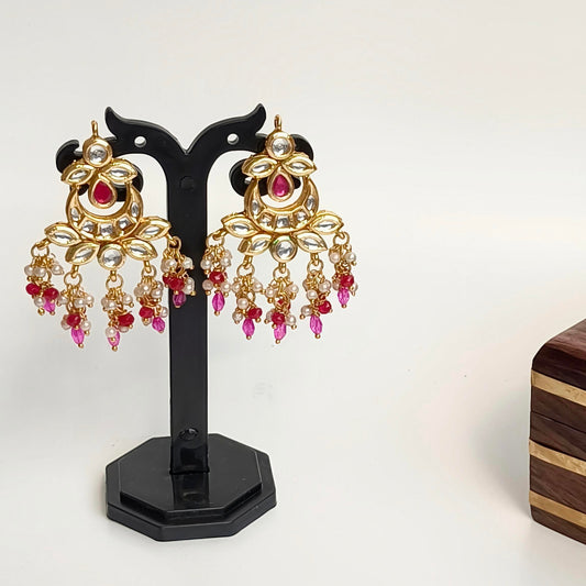 "ANSIKA" Gold Plated Pink Kundan Studed Pearl & Crystal Beaded Chandbali Earrings