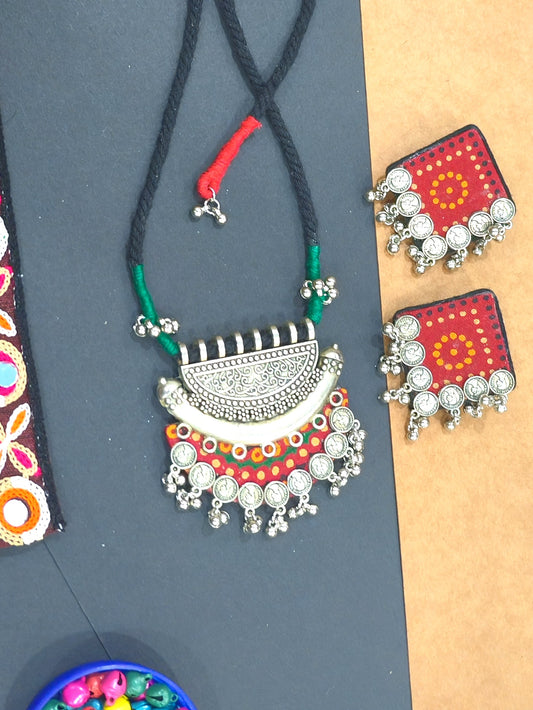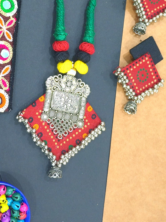 GAMTHI 1.0 Ajarak Black & Red Fabric Square Necklace Set