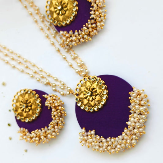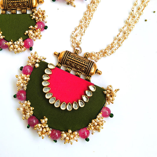GAMTHI 4.0 Ajarak Fabric Panchkon Necklace Set with Earrings