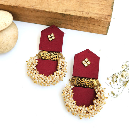GAMTHI 3.0 Ajarakh Maroon & Black Fabric Square Necklace Set