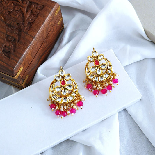 "ANSIKA" Gold Plated Pink Kundan Studed Pearl & Crystal Beaded Chandbali Earrings