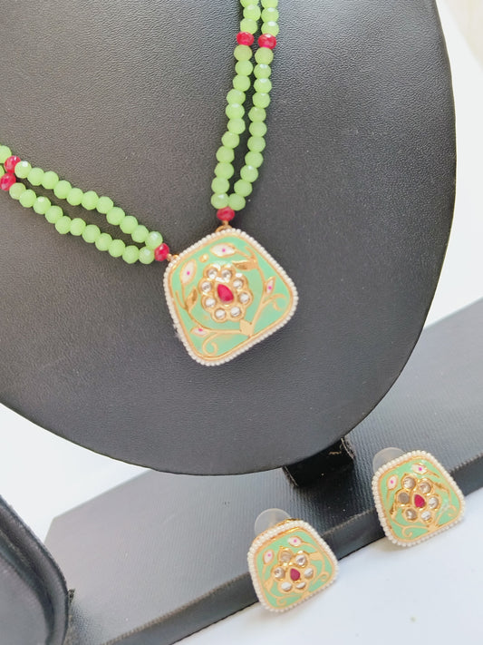 LIGHT GREEN MEENAKARI PPENDANT WITH STUD