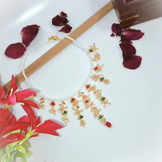 "RANGOLI" Gold Plated Multicolor Layer Kundan studded And Beaded Necklace