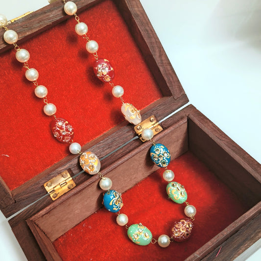 "NAYNA"Multicolour Hand-Painted Beads And Pearls Necklace