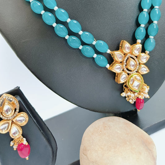 "S-SACHI" Gold Plated Kundan Turquoise Beads Necklace Set