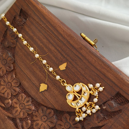 "RIYA" Gold plated Chand Motif with Pearl beaded Maangtikka