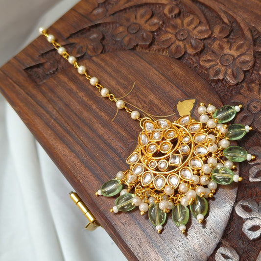 "MINA" Gold plated Kundan Chand Mangtikka with Mint Drops