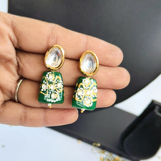 -50% OFFKUNDAN WITH PRINTED BEAD EARRINGS