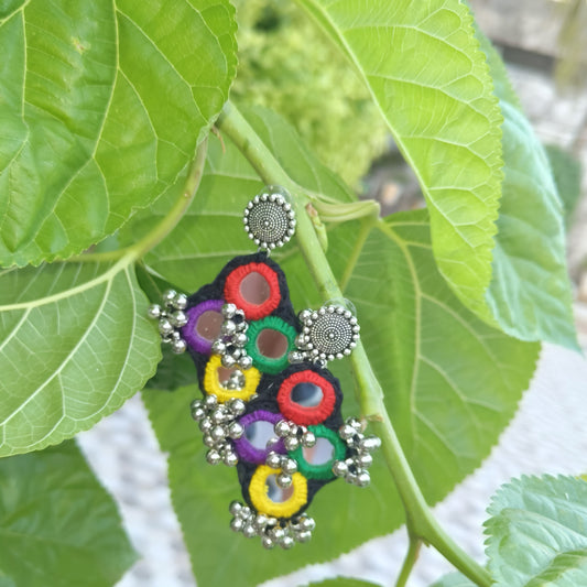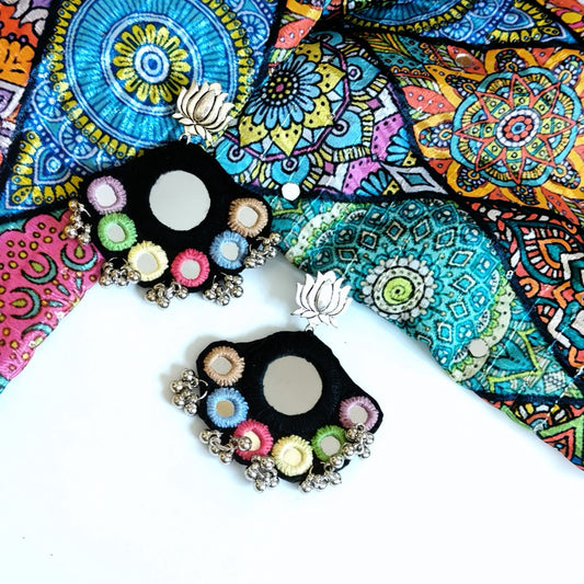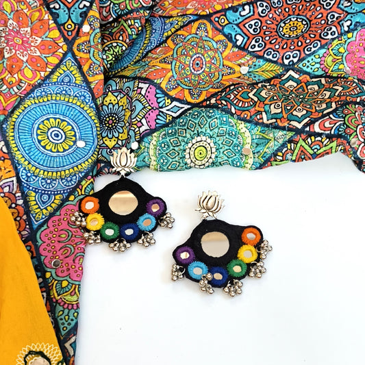 KAJAL RAINBOW WORK BLACK CIRCLE EARRINGS