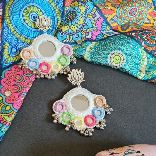 RUPALI WHITE 4 MIRROR GHOONGROO EARRINGS