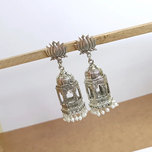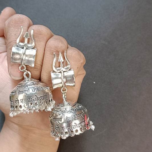 Silver Tone Louts pearl Script Sita-Ram Jhumka