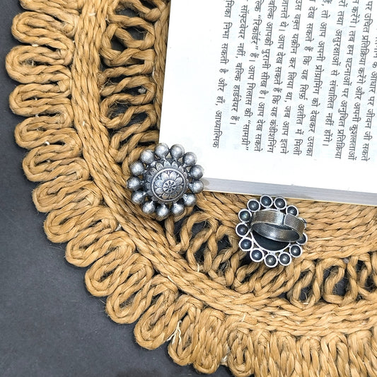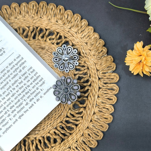FLOWER OXIDISED SILVER LOOKLIKE ADJUSTABLE FINGER RINGS