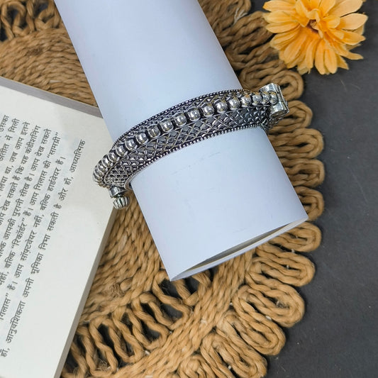 ANTIQUE FLOWER SILVER LOOKLIKE OXIDISED ADJUSTABLE FINGER RING